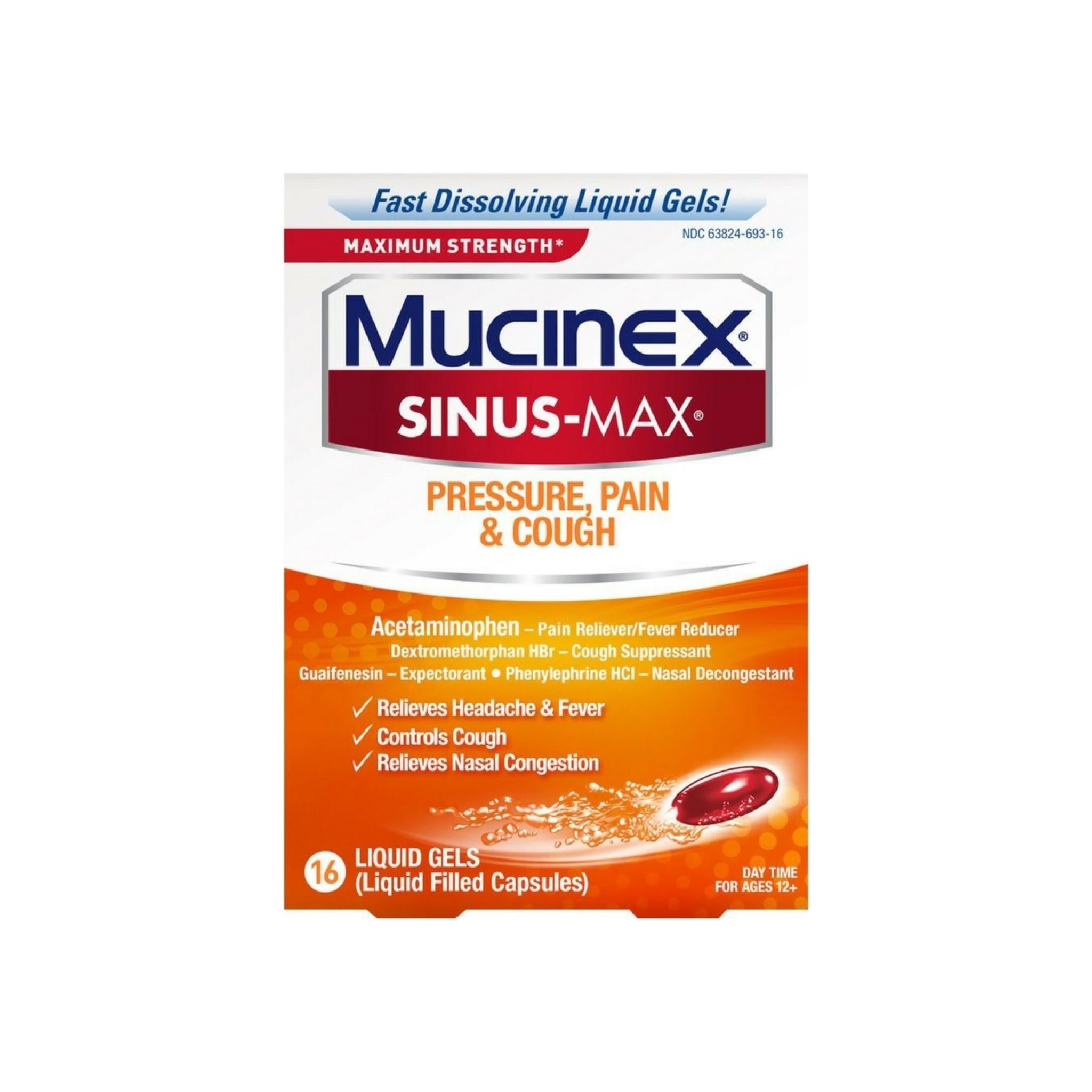 Mucinex Sinus-Max Max Strength Pressure, Pain & Cough Liquid Gels 16 ea