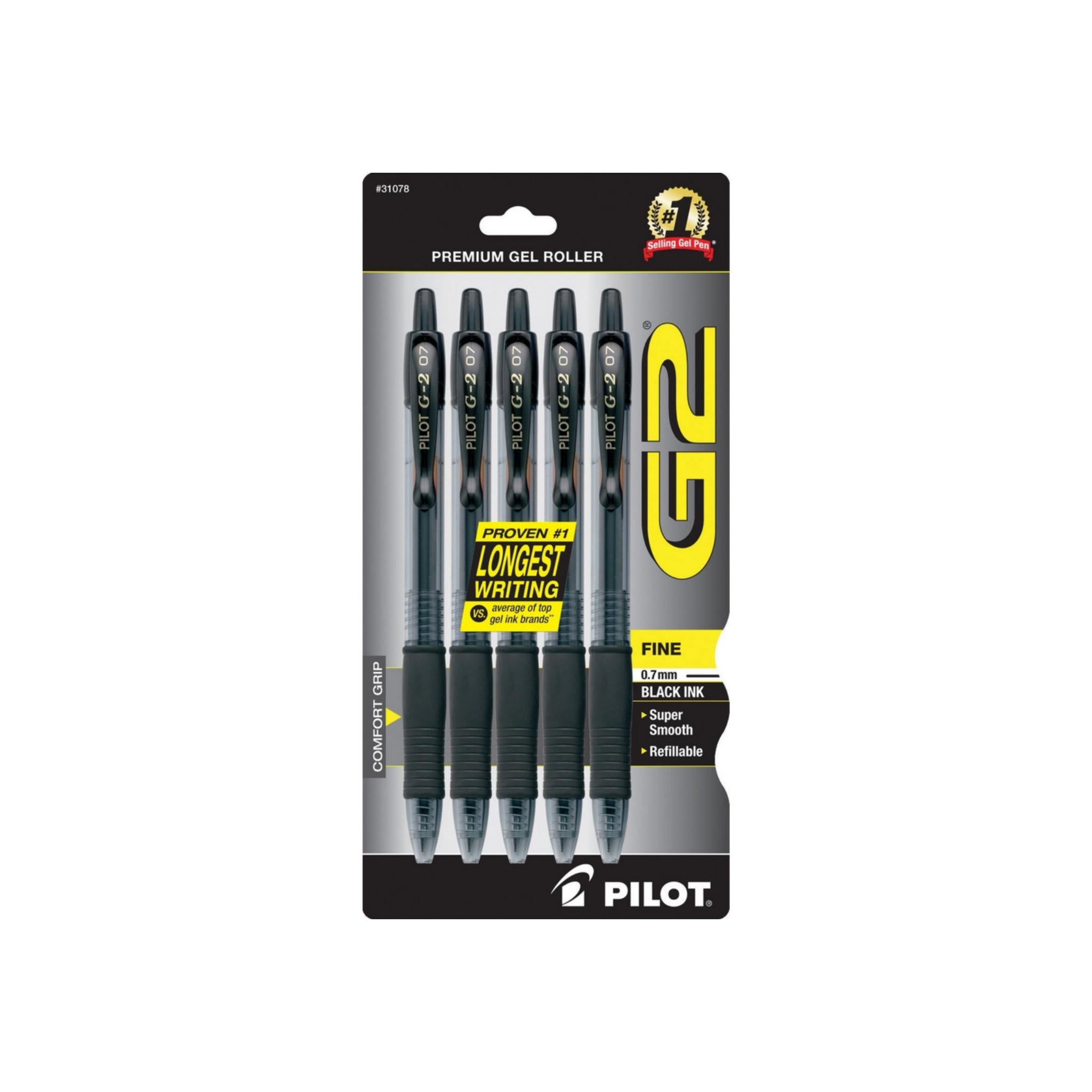 Pilot G2 Retractable Premium Gel Ink Roller Ball Pens, Fine Point, Black Ink 5 ea